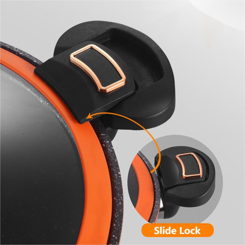 DISEÑO DESLIZANTE - El innovador mecanismo de cierre deslizante garantiza un cierre seguro, preservando los sabores y nutrientes mientras se cocina. Disfrute de la tranquilidad de saber que sus comidas están cocinadas a la perfección.