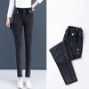 Cálidos vaqueros pitillo elásticos de felpa para mujer
