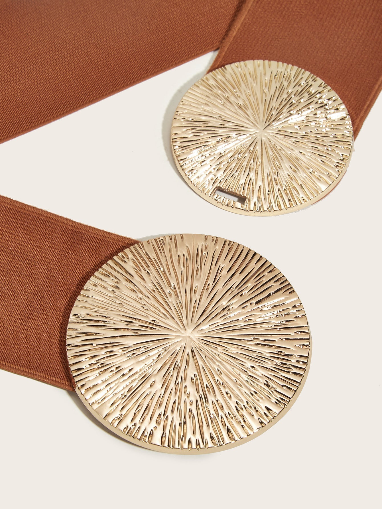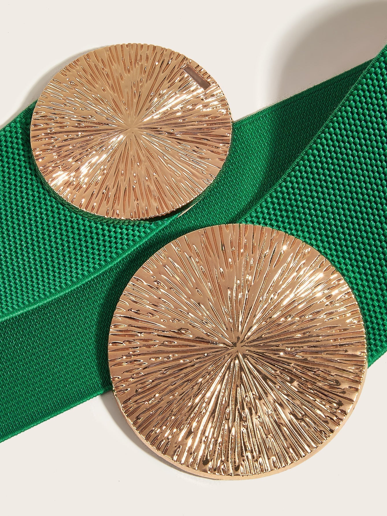 Longitud del cinturón: 70 cm Material de la hebilla del cinturón: Aleación Tipo de cierre: Gancho Ancho: Estilo ancho (>4 cm) Detalles de diseño: Hebilla redonda doble con ajuste elástico