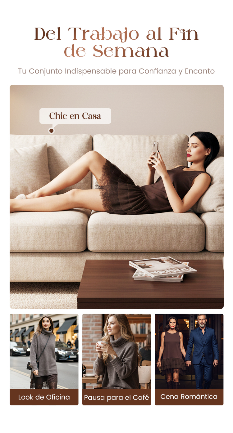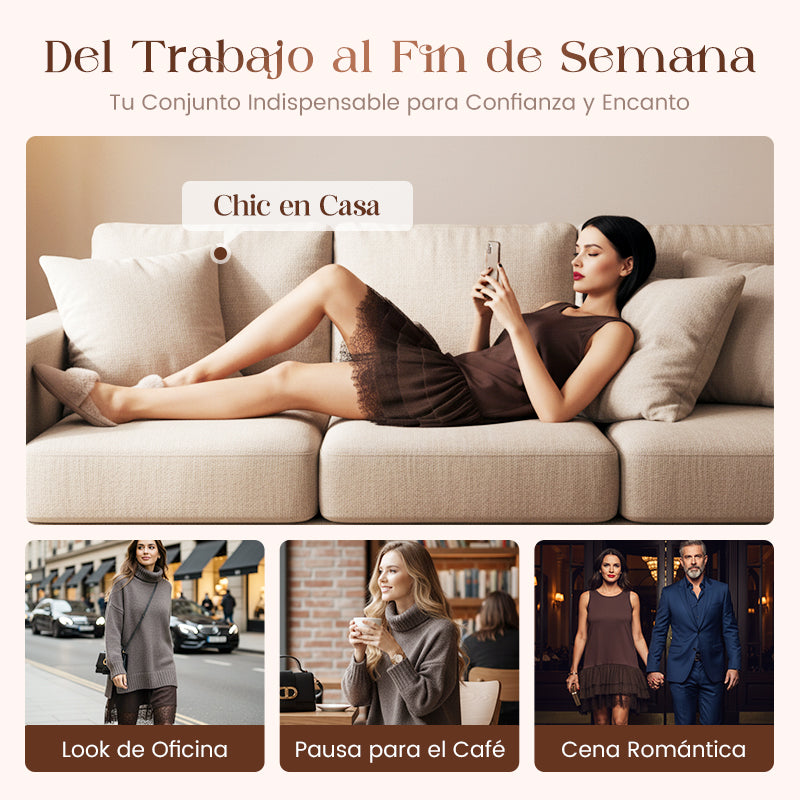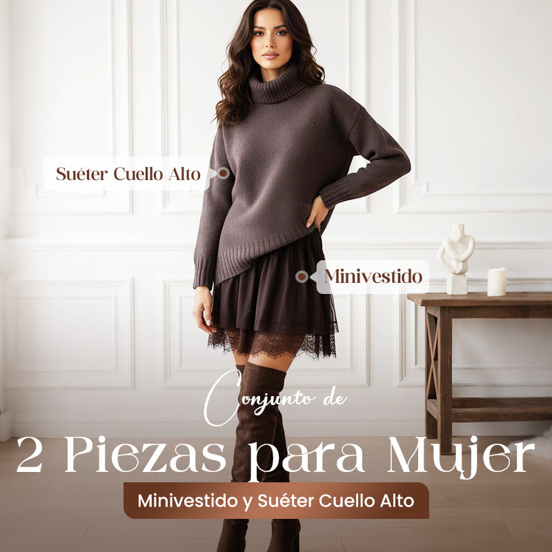 Conjunto de 2 Piezas para Mujer: Vestido Tipo Suéter de Cuello Tortuga y Vestido Lencero