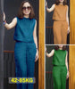 Traje casual de lino de algodón sin mangas de color sólido para mujer
