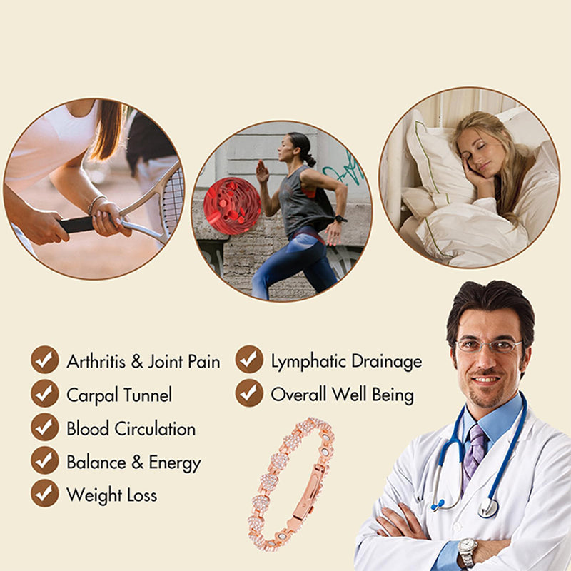 COBRE SÓLIDO 99.99%: Elaborada con cobre puro al 99.99%, esta pulsera magnética hipoalergénica, libre de plomo y níquel, garantiza máxima comodidad y durabilidad. Se utilizan técnicas de vanguardia para evitar la oxidación y los rayones, asegurando una calidad duradera.