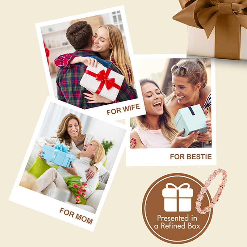 LISTA PARA REGALAR: Sorprende a tus seres queridos con una lujosa pulsera magnética de cobre que combina estilo y funcionalidad. Es el regalo perfecto y detallado para amigas, familiares o esa persona especial.